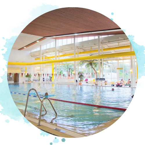 Die Schwimmbecken haben eine Wassertemperatur von ca. 32 °C – perfekt für Babyschwimmen, damit sich die Kinder im Wasser wohlfühlen.
