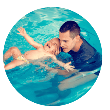 Dein Baby gewöhnt sich daran, dass Wasser über Gesicht, Augen, Nase und Ohren fließt. Das ist eine wichtige Grundlage fürs spätere Tauchen und nimmt frühzeitig Ängste.